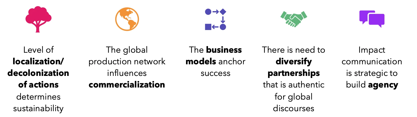 The global production network influences commercialization: The global production network plays a crucial role in the commercialization of innovations developed through RD&D activities. Understanding and strategically leveraging global networks can facilitate the successful commercialization of solutions, enabling them to reach larger markets and have a wider impact.